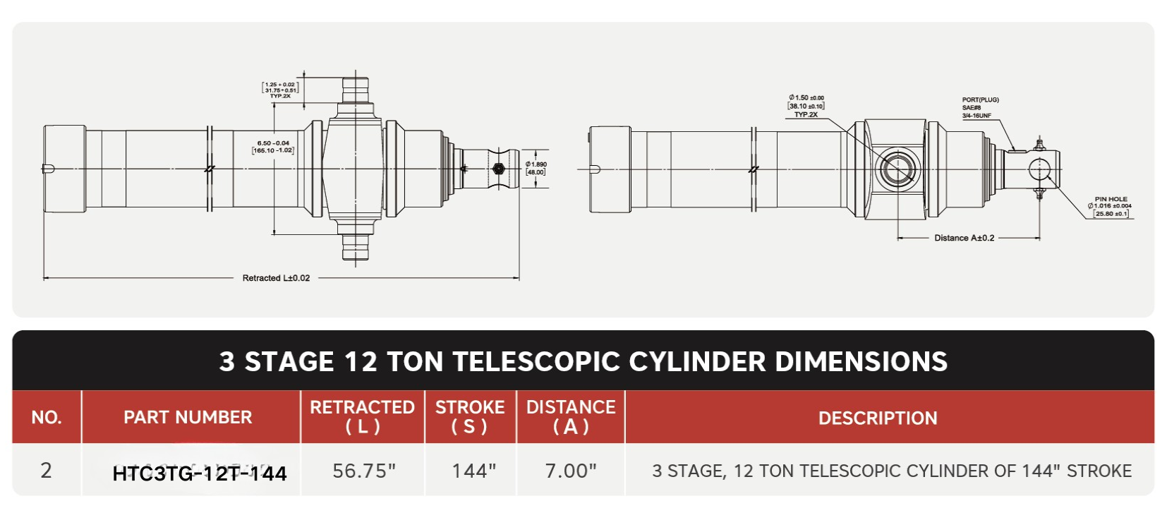 "HTC3TG-12T-144", 3-ступеневий, 12 тонн 144-дюймових телескопічних циліндрів