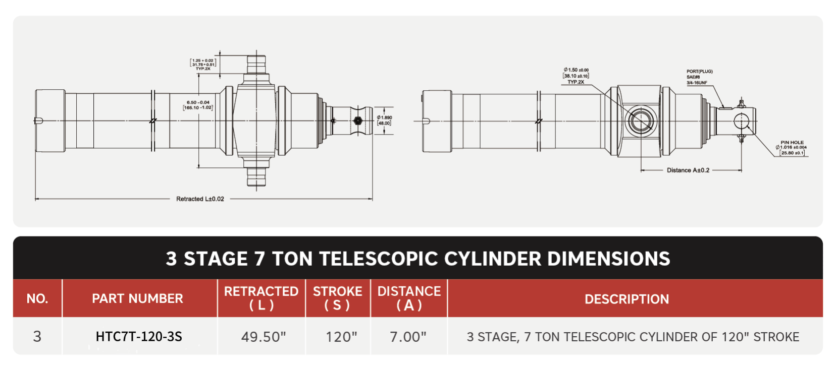 "HTC3TG-7T-120", 3-ступеневий, 7 тонн 120-дюймових телескопічних циліндрів